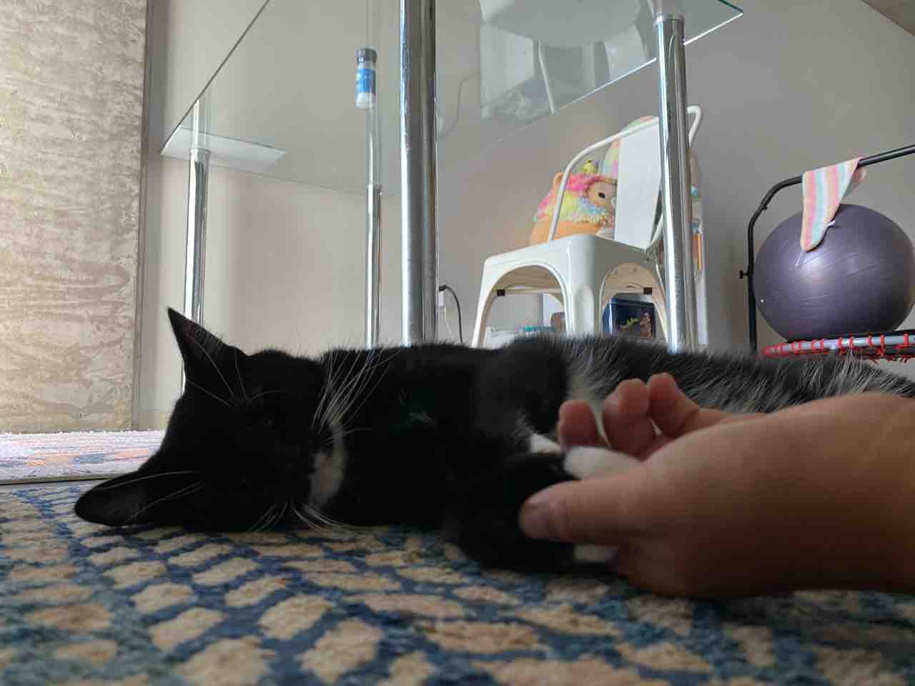 肉球マッサージしてあげると目を細めてかわいいやつよのう
