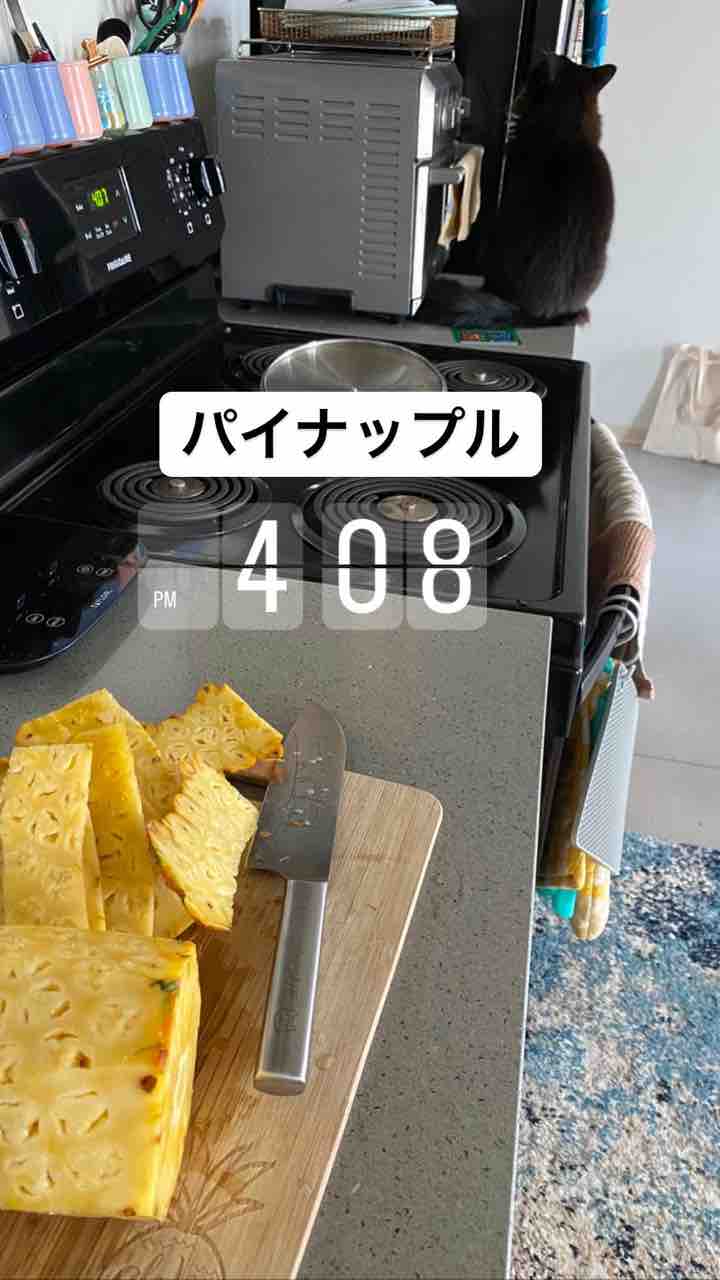 ホールフーズで買ってきたパイナップルもカットするぞ〜!