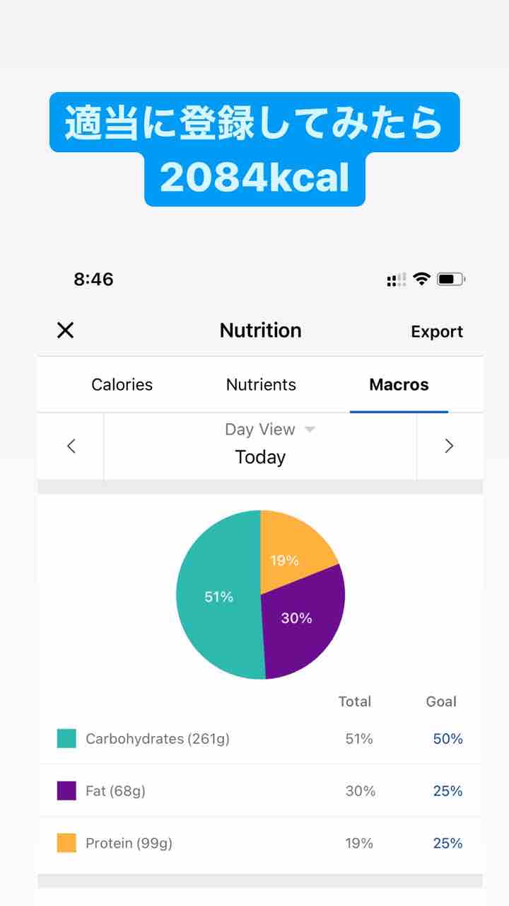 カロリーは全部食べた後に適当に登録してみたら2084キロカロリーくらいでした。