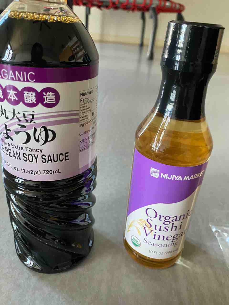 オーガニックの醤油と寿司酢。