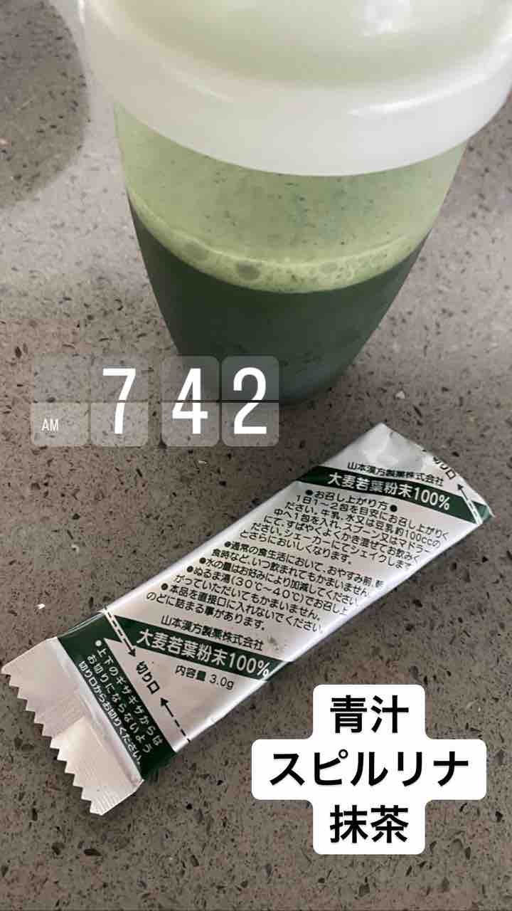 朝はトリプルグリーン。青汁、スピルリナ、抹茶!
