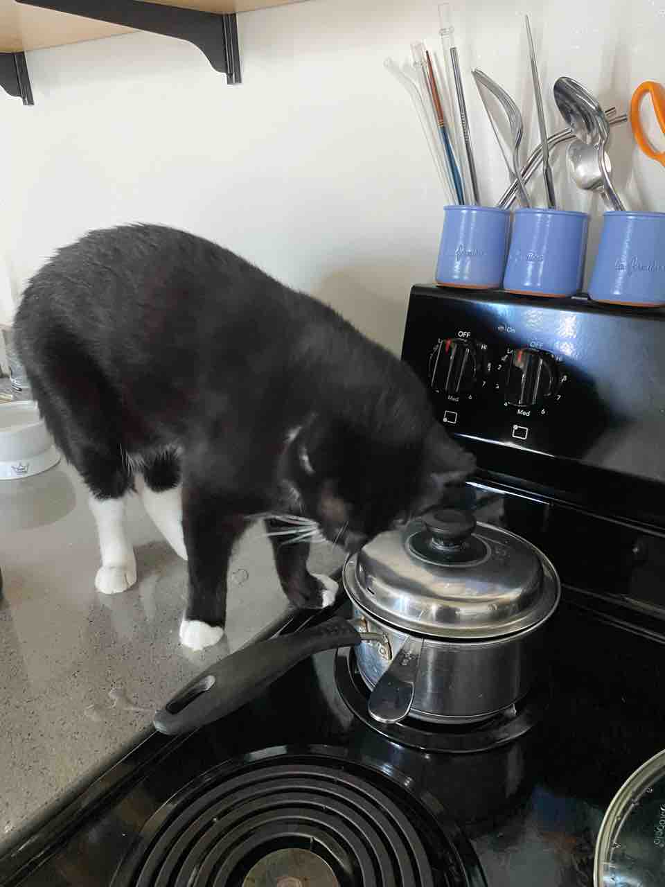鰹節で出汁を引いているので味噌汁の香りが気になるようで何度も鍋を開けていた。