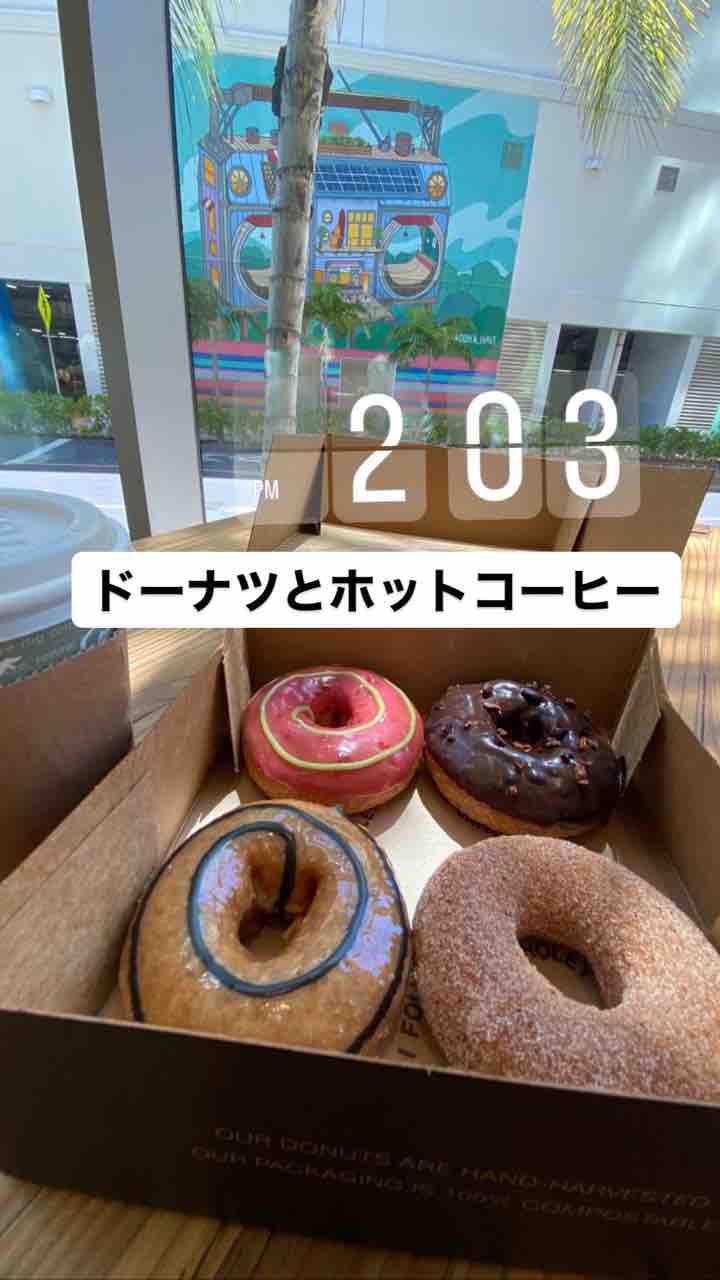 人間はまだ病院に入れないので、猫たちをドロップオフして、すぐ裏のホーリーグレイルっていうドーナツ屋へ。