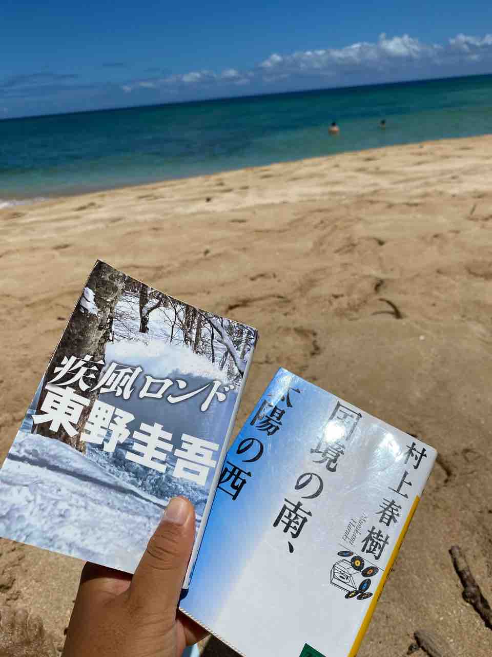 ビーチにて読書。