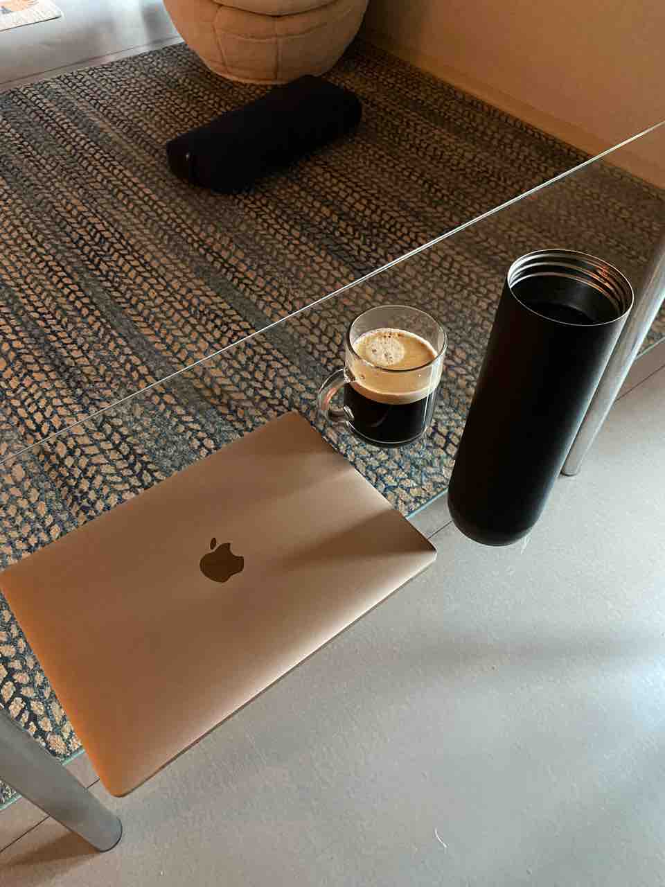 ネスプレッソのブラックコーヒーと、お水。