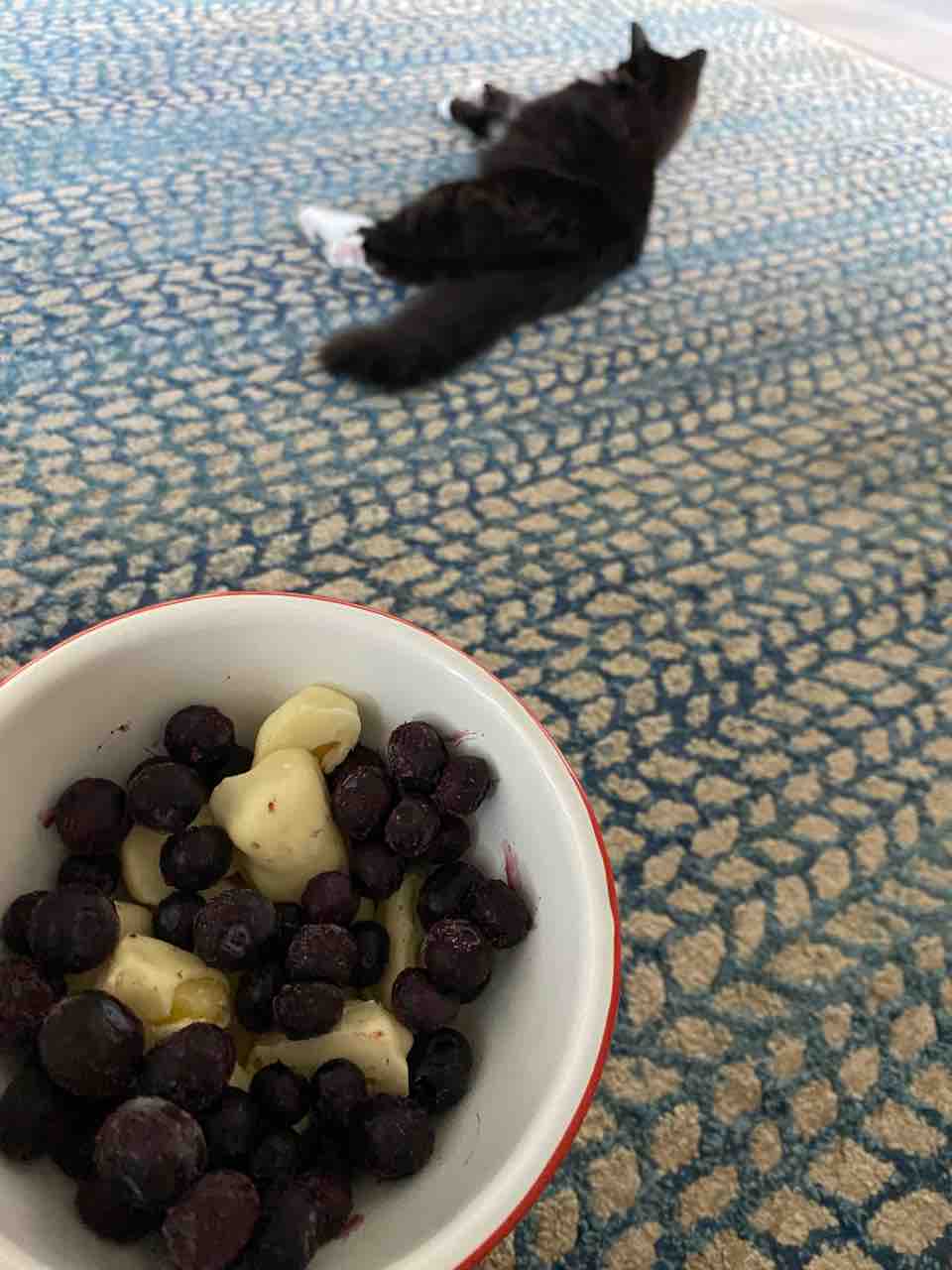 冷凍ブルーベリーと、冷凍パイナップルのホワイトチョコがけ。