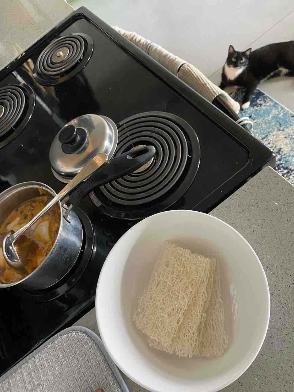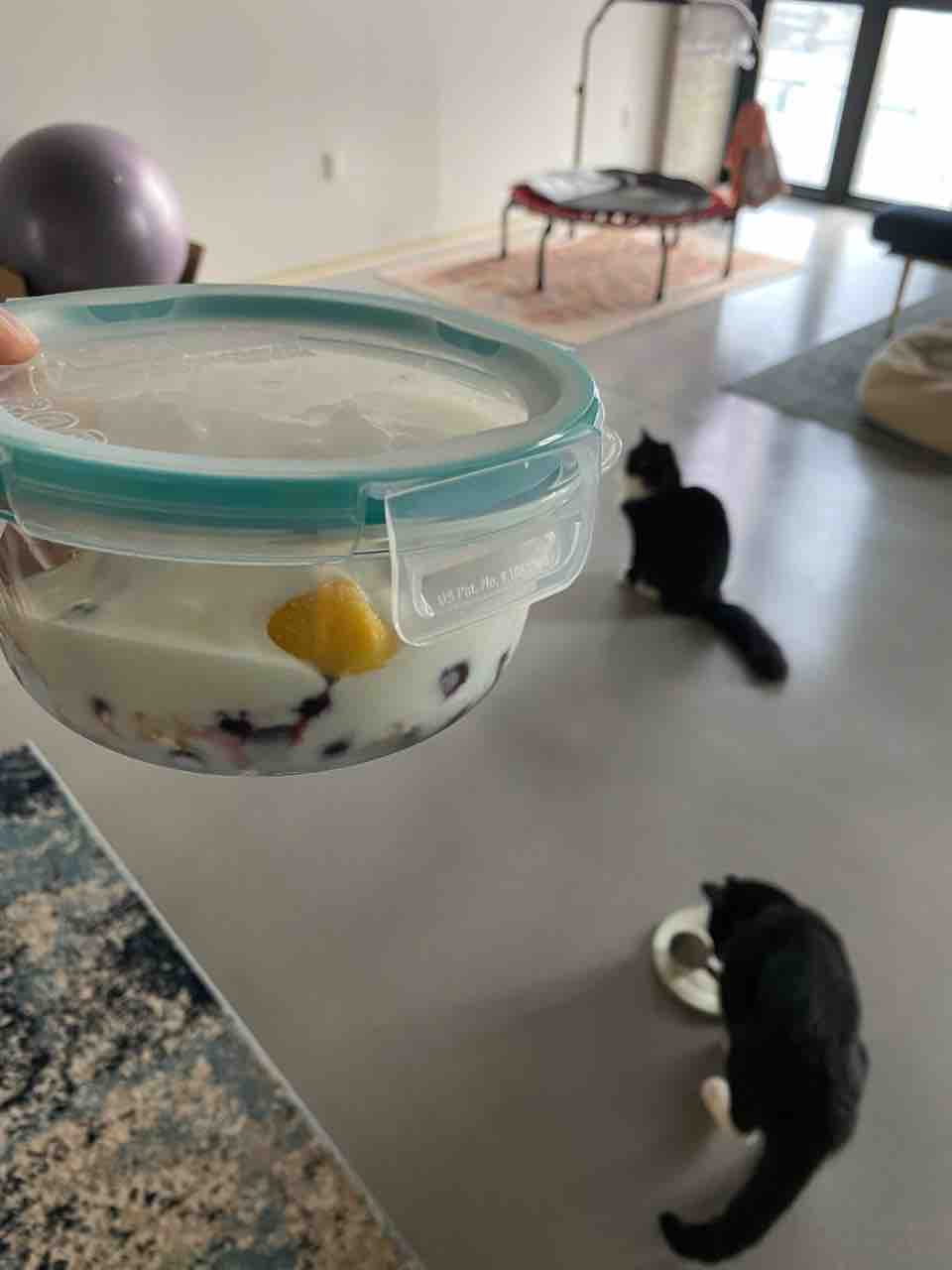 ヨーグルトは猫との戦いである。(最終的にベッドルームに連れて行かれた、たま様)