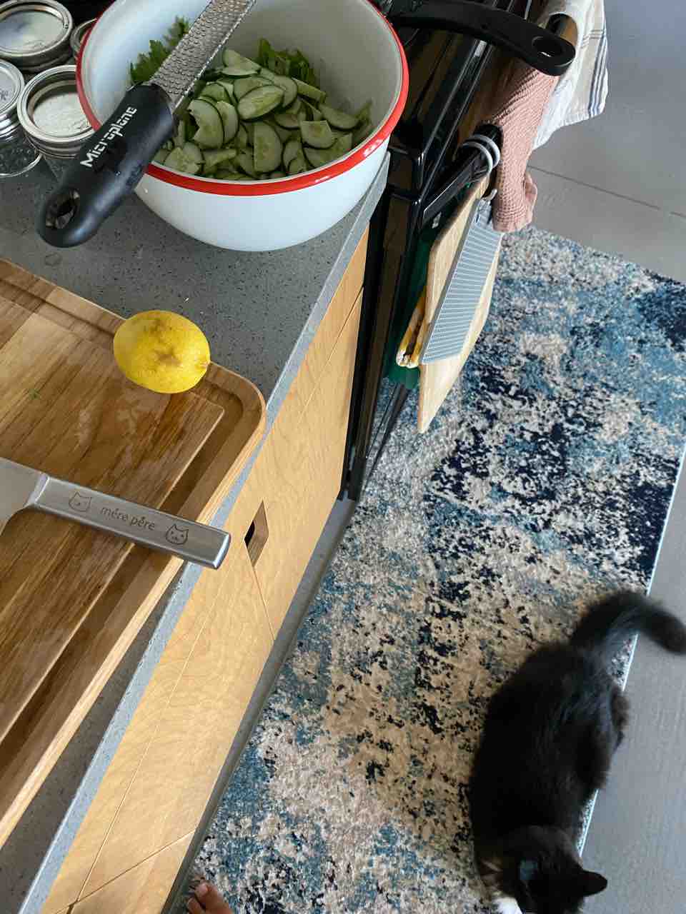 ディナーは水菜と胡瓜のレモンサラダと。
