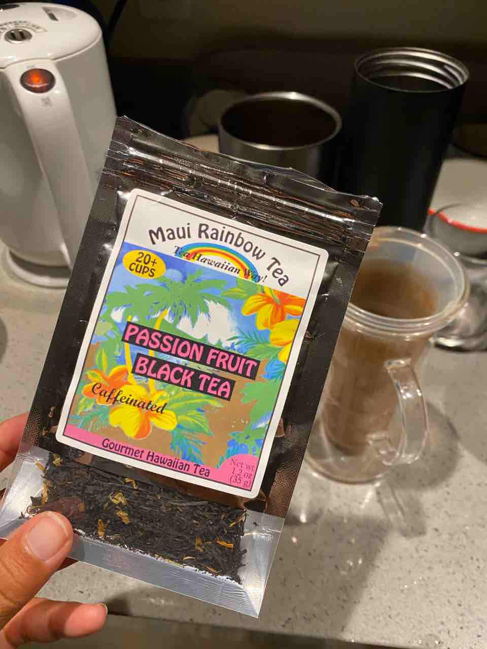 今日のお茶はパッションフルーツブラックティー。爽やかでパリッと美味しい。