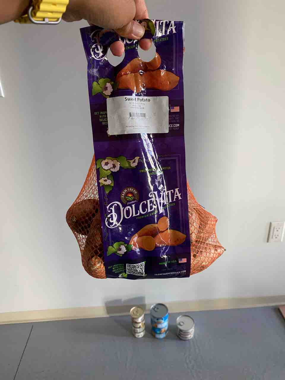 なんかこのスイートポテトと奥の缶詰、夫がご近所さんから頂いてきたのよ。