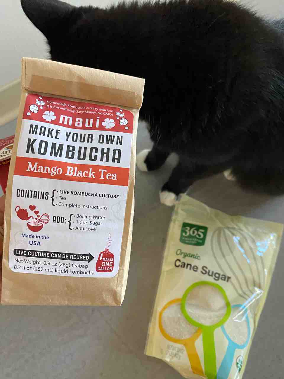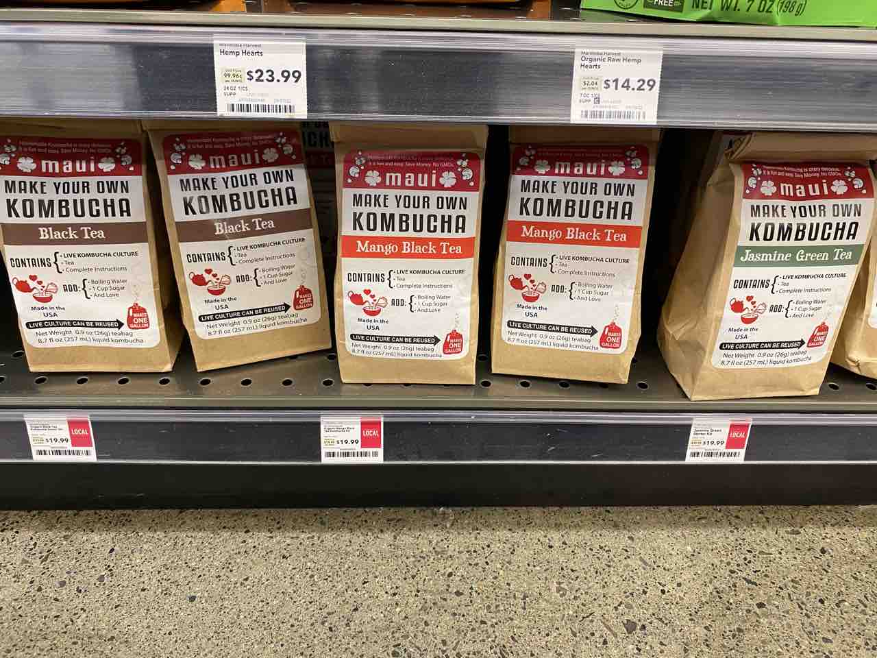 オーガニックのケーンシュガー(5.79ドル)、コンブチャキット(19.99ドル)を購入。