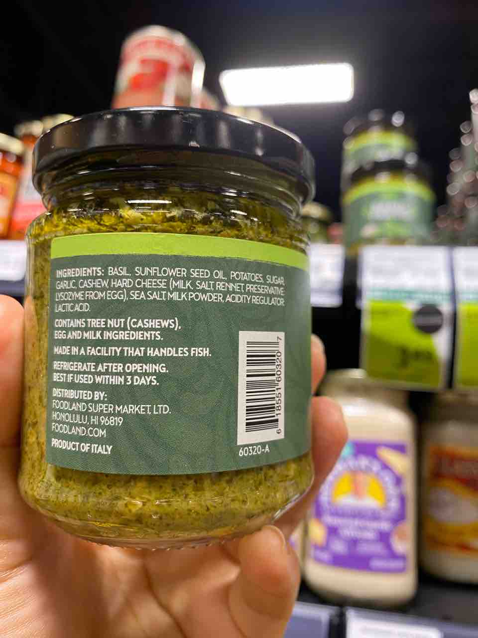 エキストラバージンオリーブオイルで作られたペストソース(ジェノバソース)を探してたんだけれど