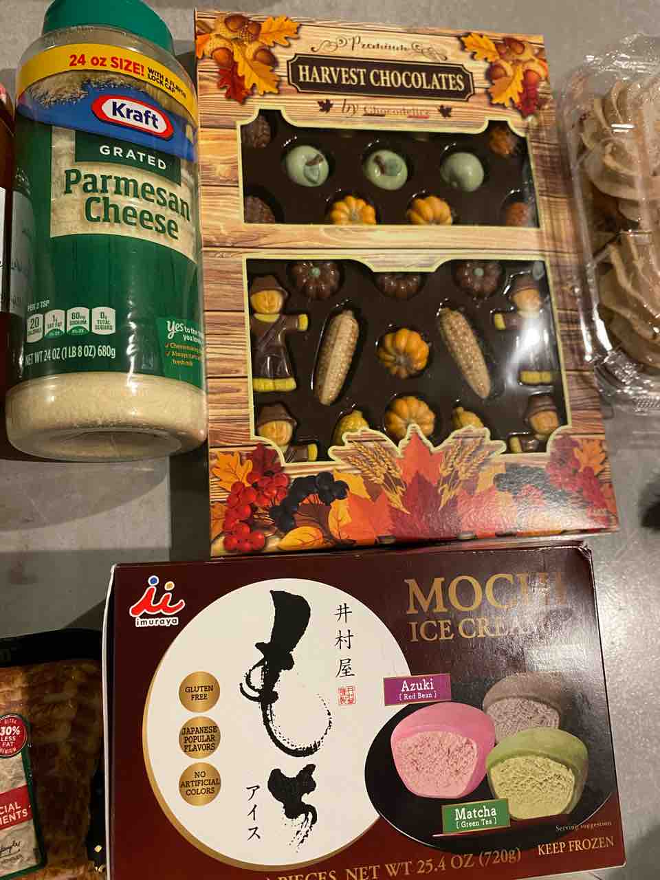 おやつのチョコ(季節物なのでクリアランスで安くなってた)と、井村屋の餅アイス!!!
