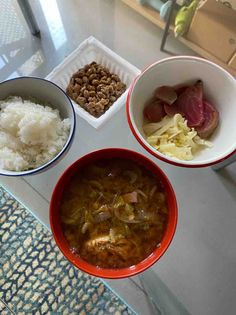 朝ごはんは、白米、納豆、ビーツとフェンネル、味噌汁!