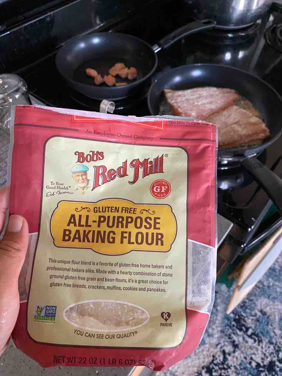 グルテンフリーの粉をはたいてから、発酵バターでカリッと。