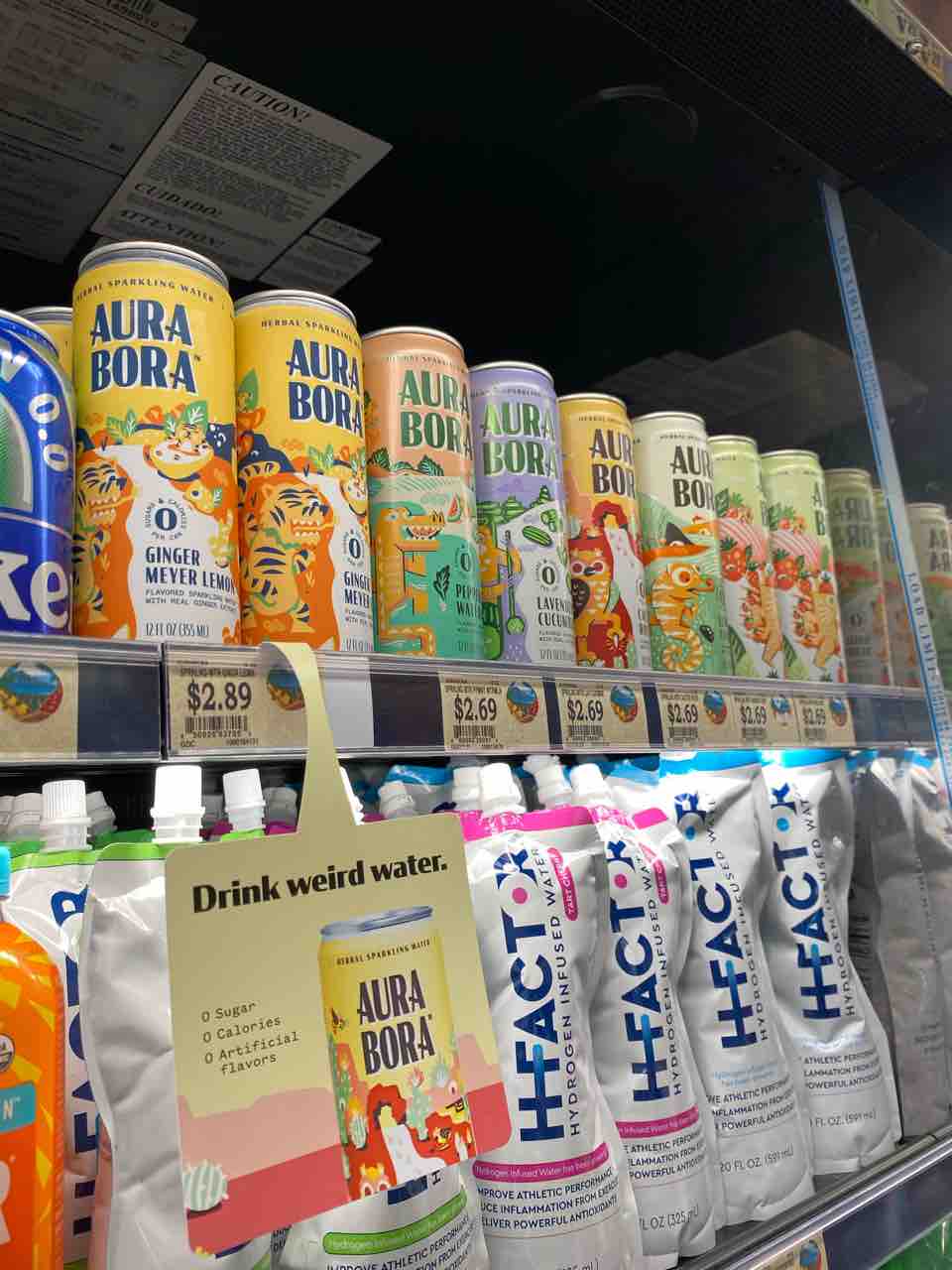このAURA BORAっていうスパークリングウォーターもリベートで無料になるので最近買ってます。