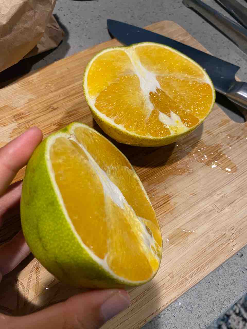 夜、ローカルオレンジをカットしてみたら皮が薄い!