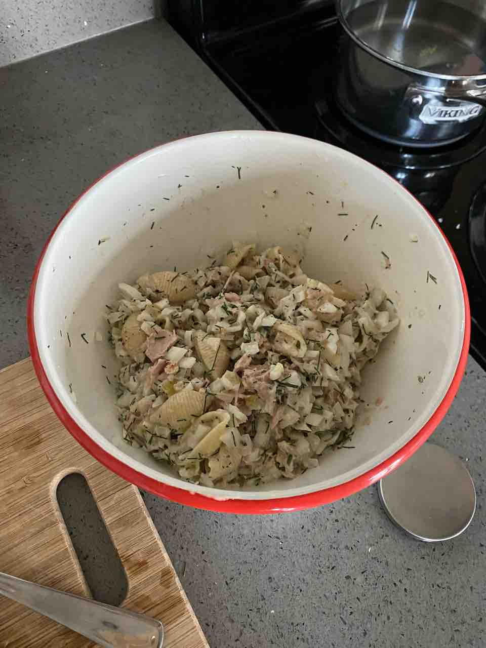 ツナと玉ねぎ、ディルと塩レモンのパスタサラダを作りました。