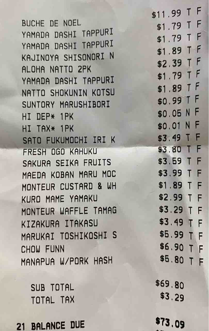 全部で73ドル。9700円。