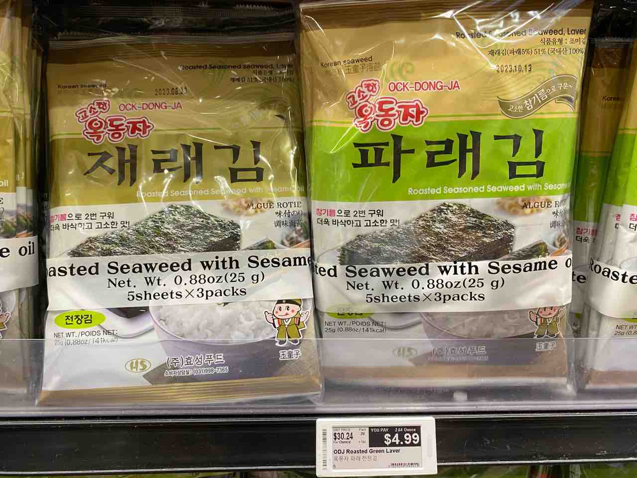 韓国海苔を買おうと思って、左と右、どっちを買おうか悩んで右にしました。