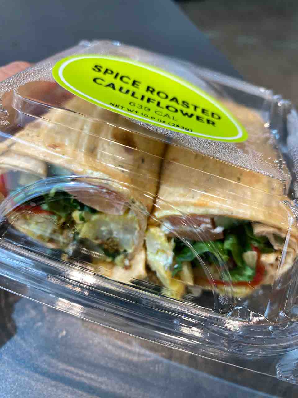 こっちのスパイスローストカリフラワーのラップを夫と半分こ。これ意外と期待以上に美味しかった!