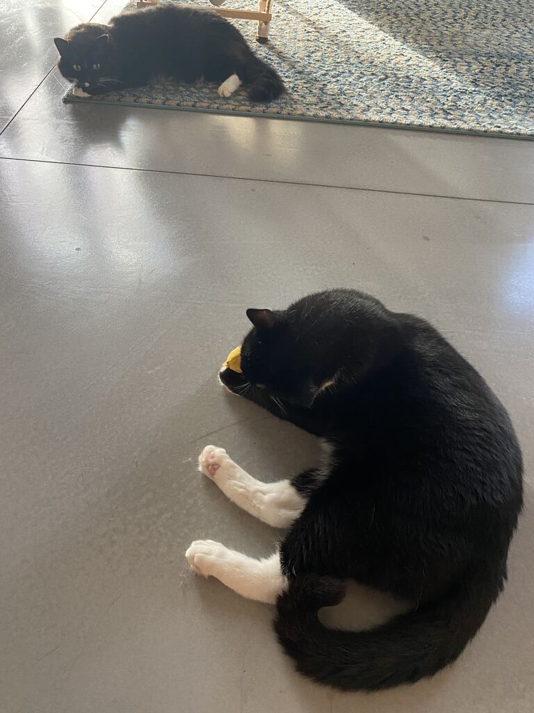 一度、順番待ちしてるポチ子が不憫になって渡してあげたら、たま様に猫パンチくらってた。ごめん…。