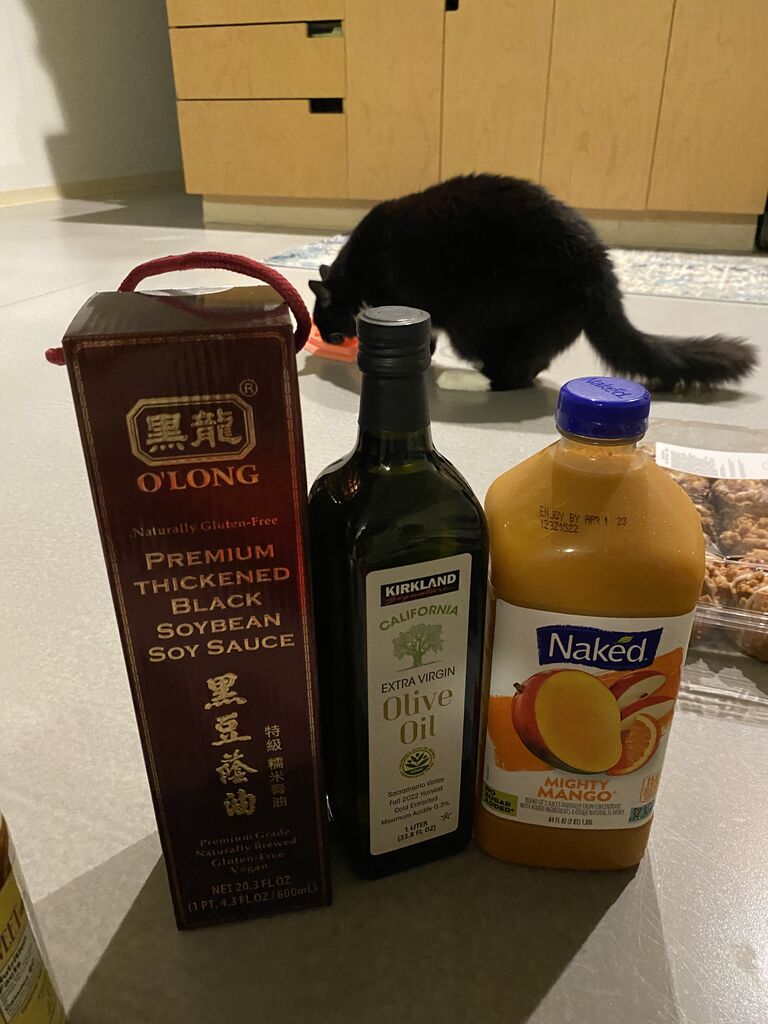 あとエキストラバージンオリーブオイルと、夫のマンゴージュース。