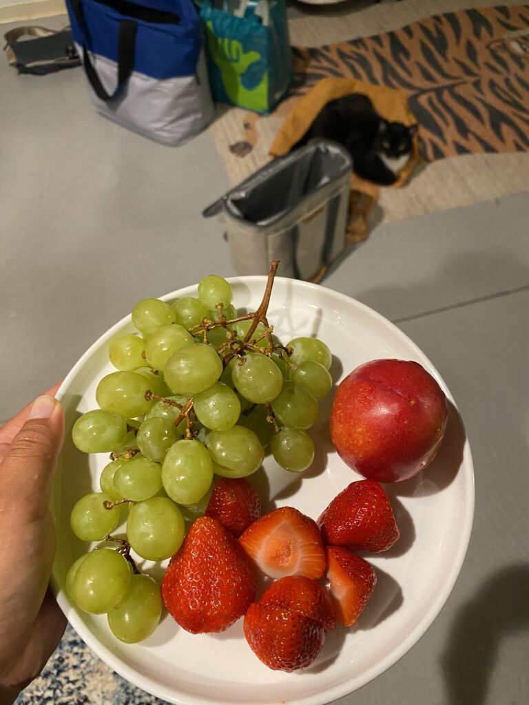 いちごとプラム、あんまり甘くなかった。逆にブドウは甘すぎて食べるの大変!