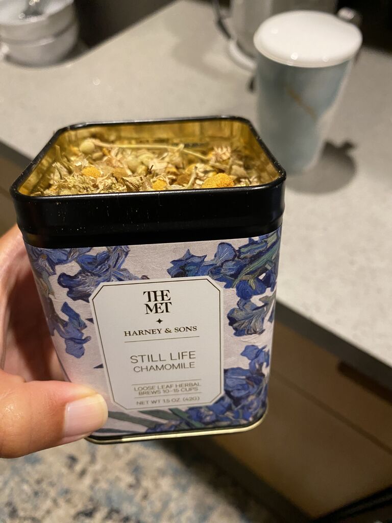 夜のお茶は、お腹に優しげなカモミール。