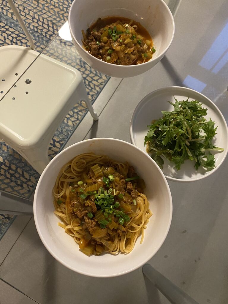 恐る恐るミートソースも食べたけど、こっちも大丈夫で、お腹が脂質に反応してるってわけじゃなさそう。