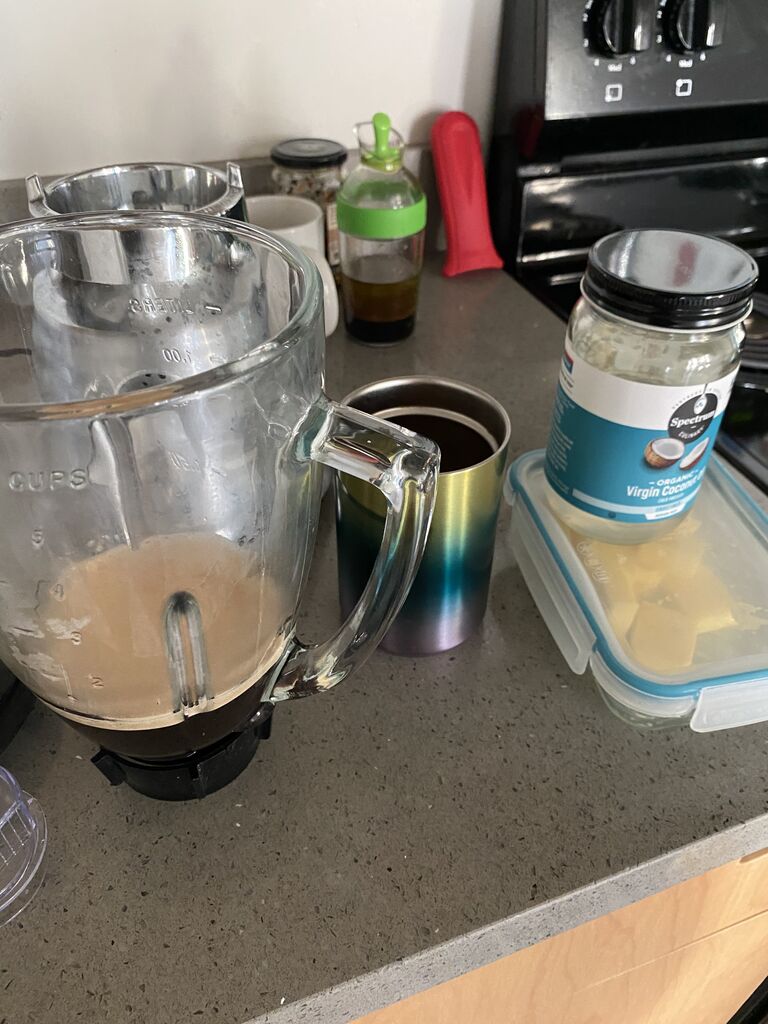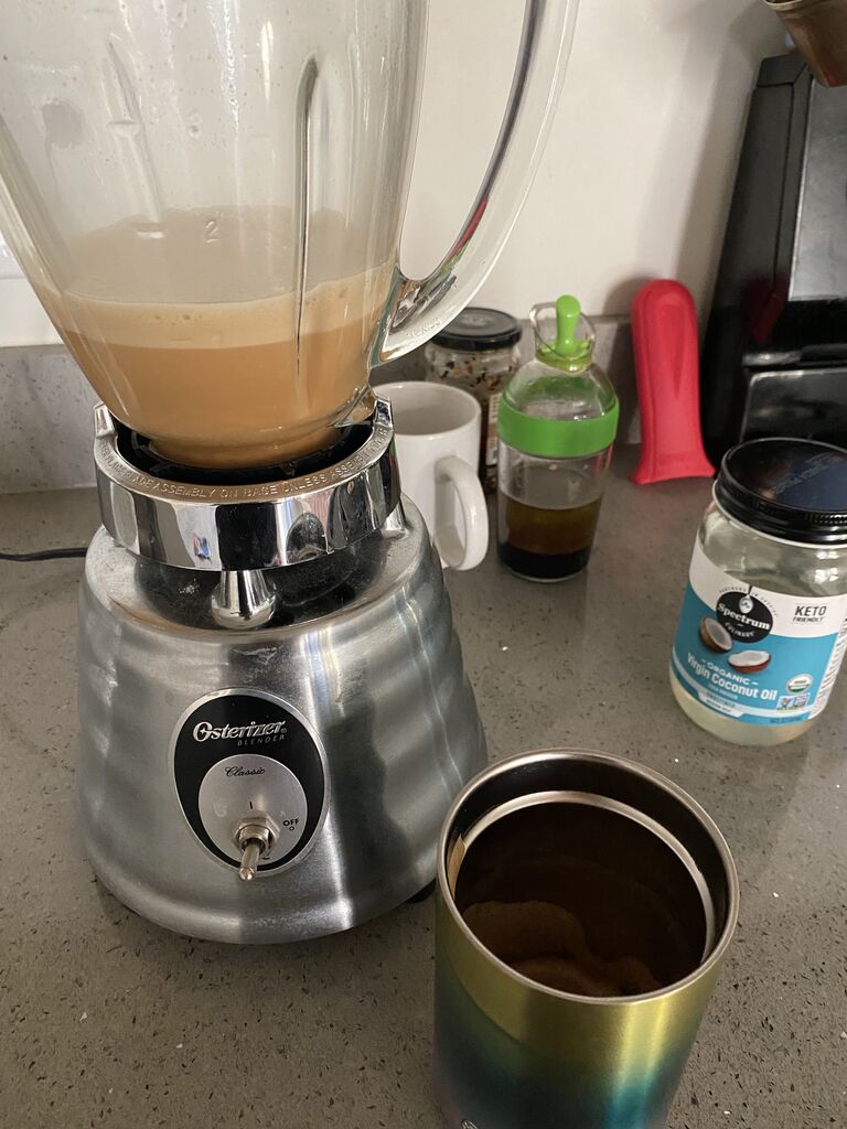 コーヒーにグラスフェッドバターと、ココナッツオイルをチョロリと入れてブレンダーにかけるだけ。