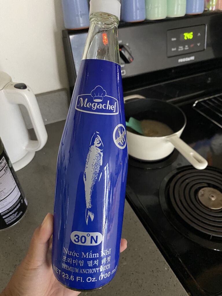 この魚醤で味付けです。使い切っちゃたのでまた買わねば。