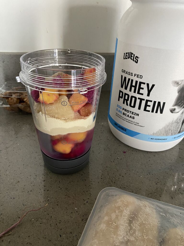 冷凍バナナ、ターメリック(ウコン)、冷凍フルーツ、プロテインで