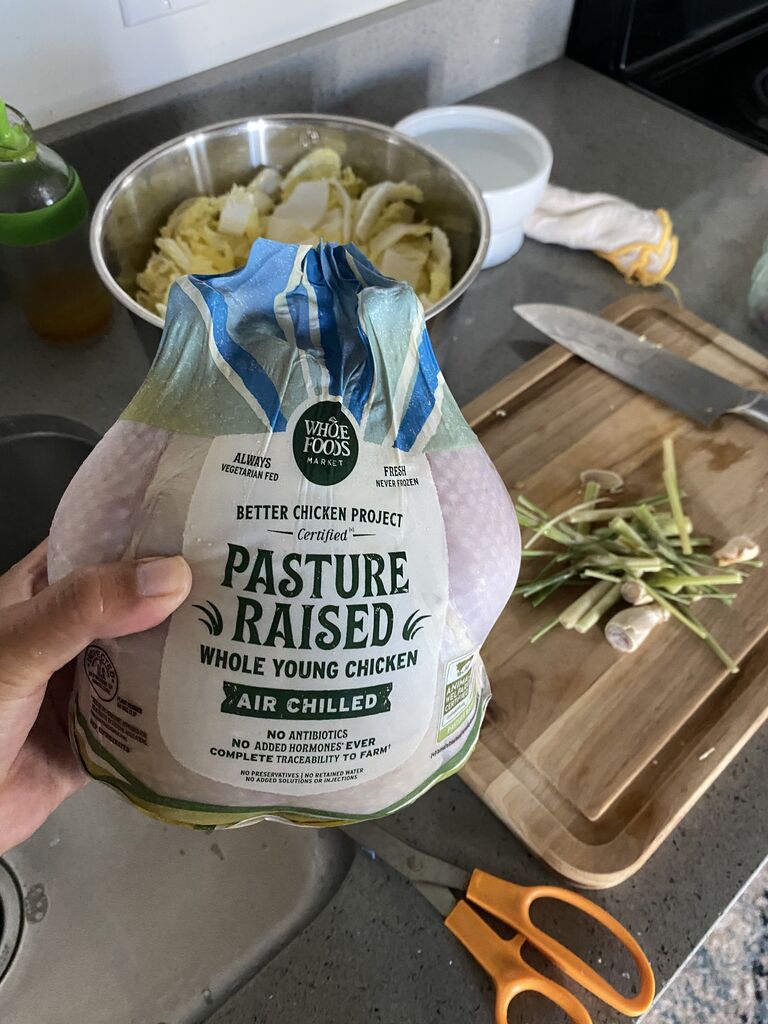 夜はパスチャーレイズドチキンを蒸して。