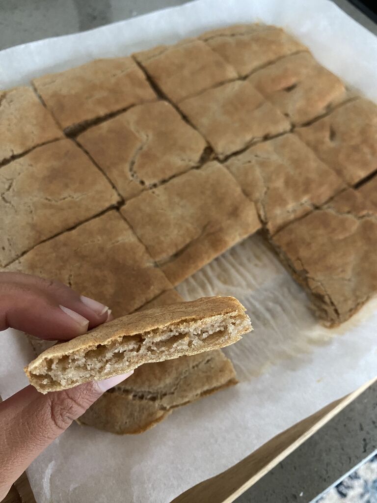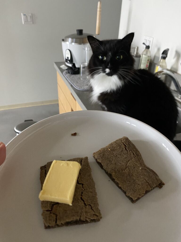 おやつに蕎麦粉と米粉のパン。グラスフェッドバターをのせて。