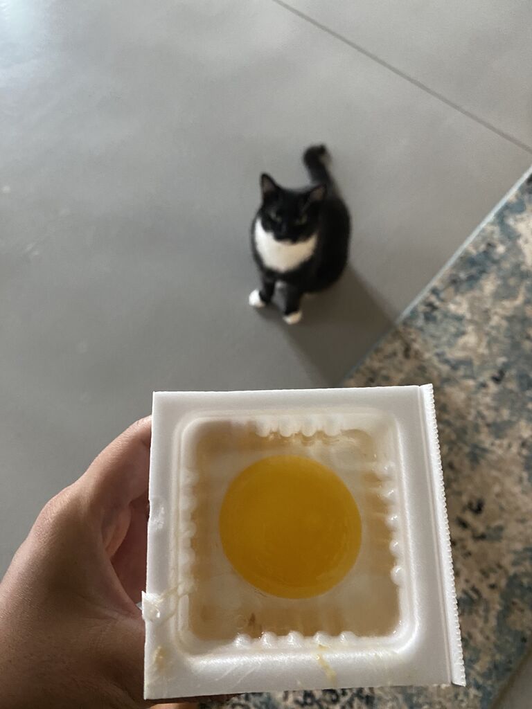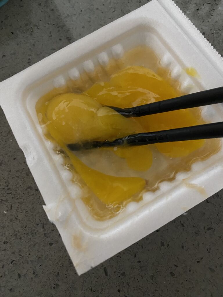 (洗い物減らすために、納豆のパック再活用中)