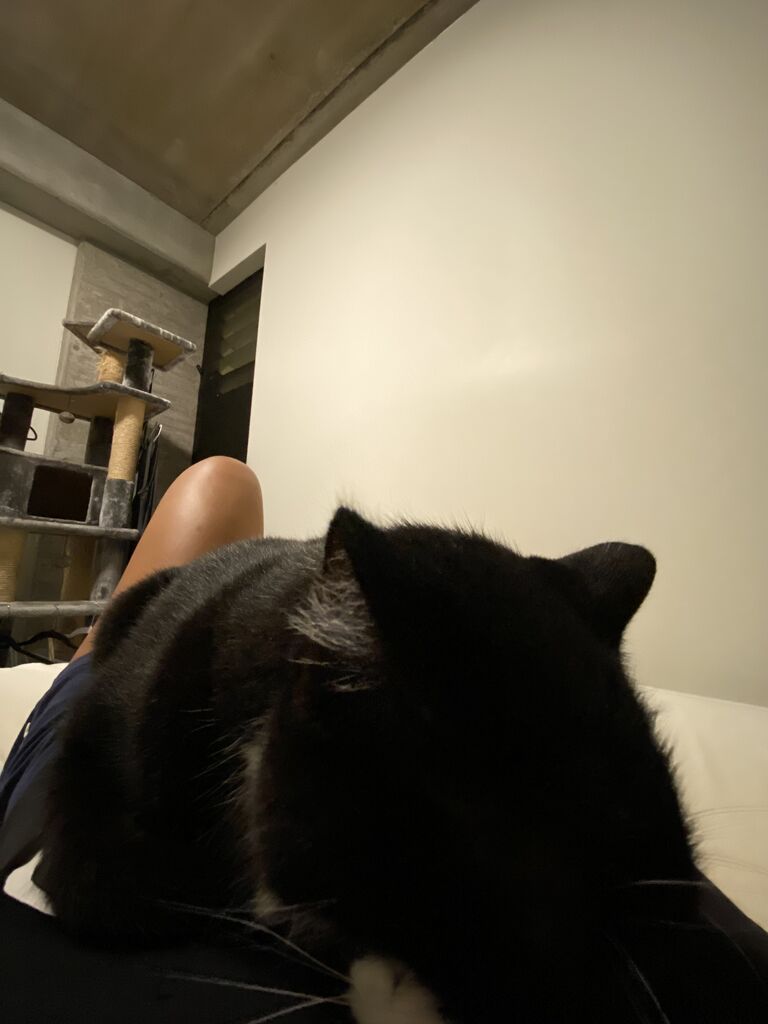 そしてホカホカの風呂上がりの私の上にでろ〜ん。