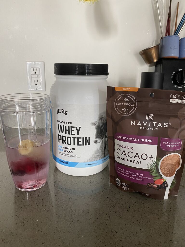 今回はバナナ半分、ベリー少し、カカオとクコノミ、アサイーのパウダー!