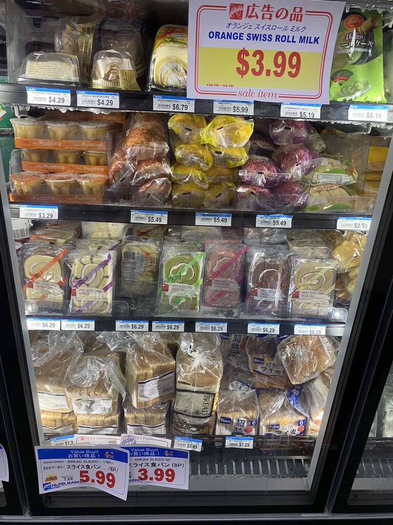 セールのスイスロール買おうか悩んだ。