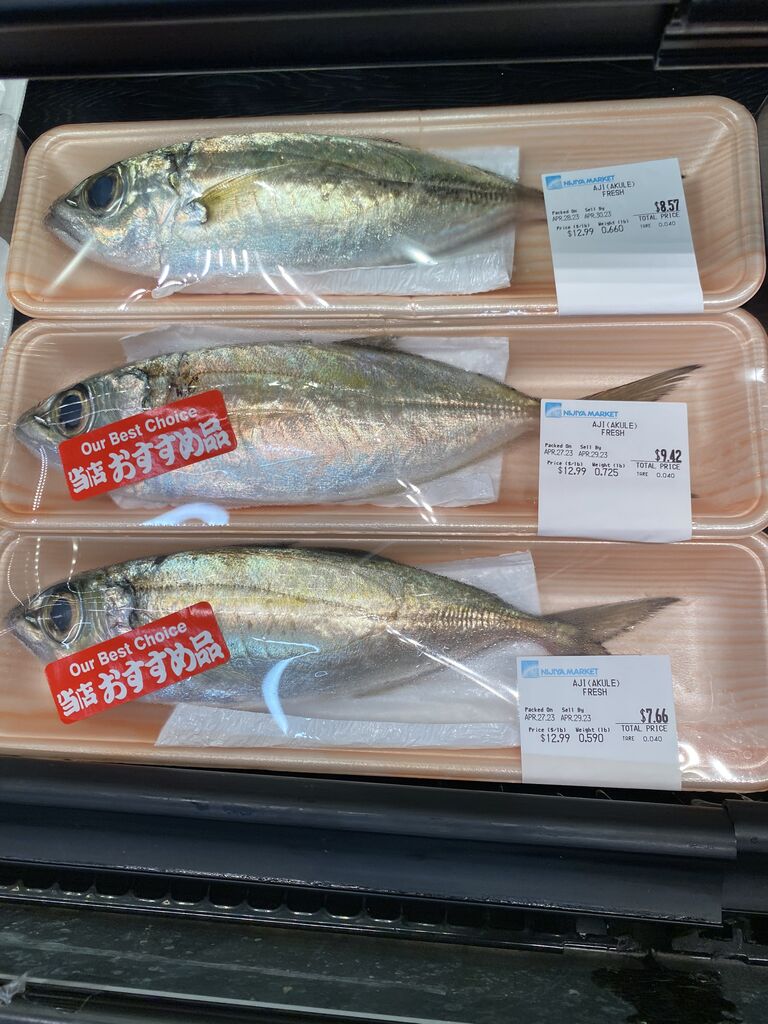 ハワイの鯵、AKULE美味しそう!キラキラ!しかし一尾千円よ。
