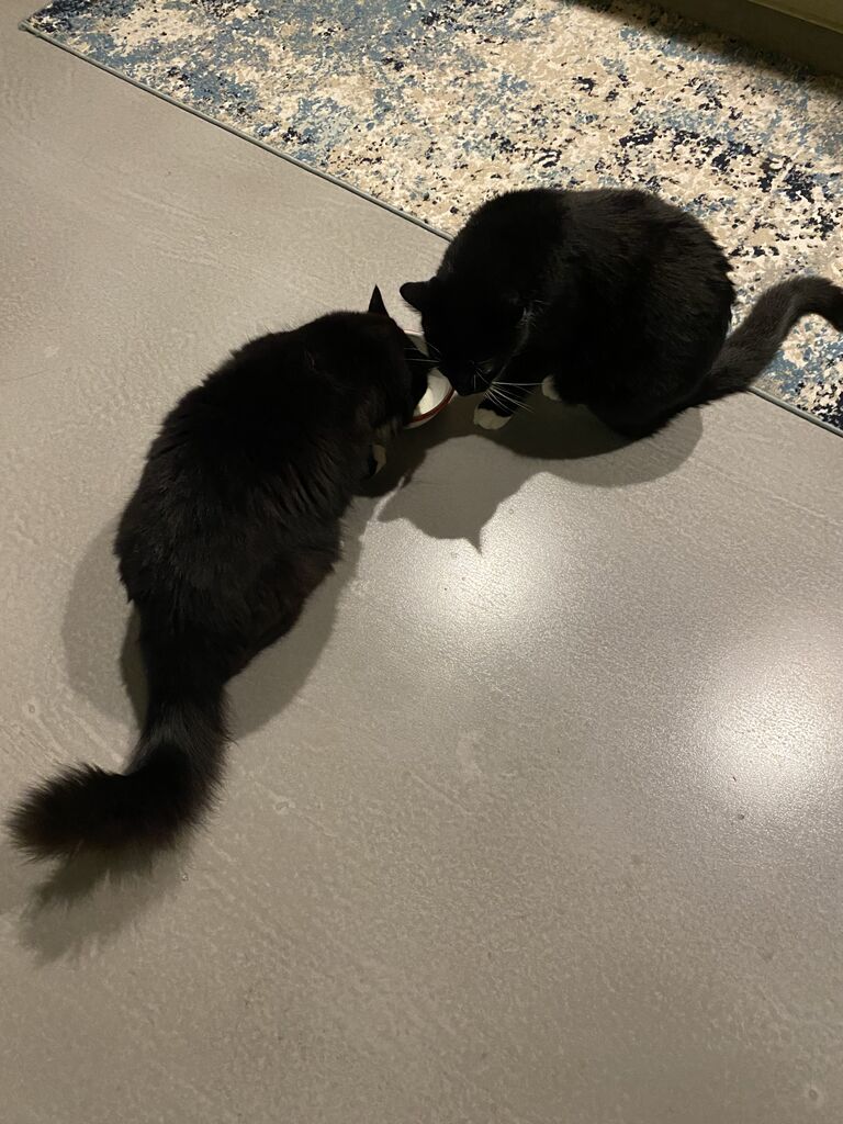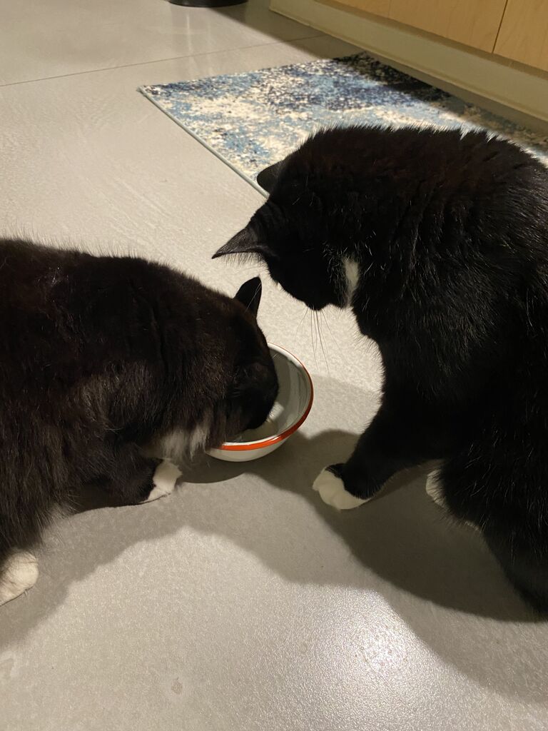 夜、猫たちの牛乳を小さなボウルに入れてみた。