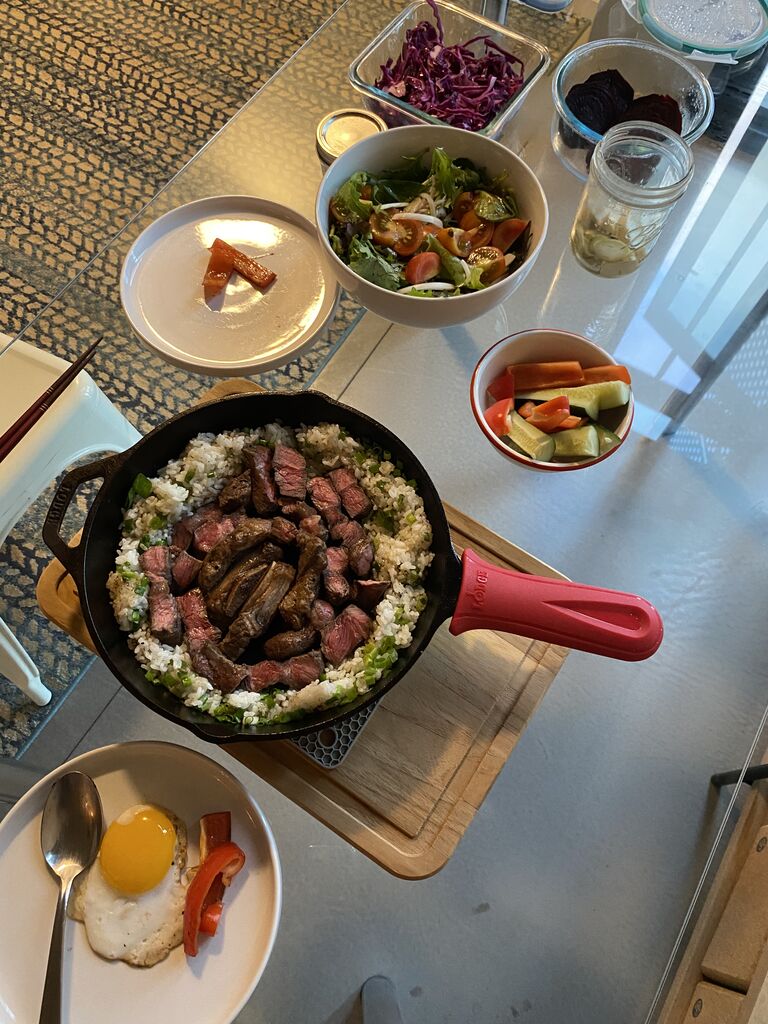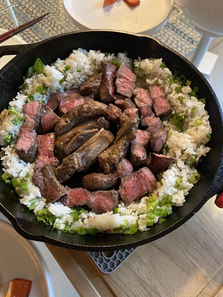 ディナーはクアロアランチのグラスフェッド牛のステーキ〜!