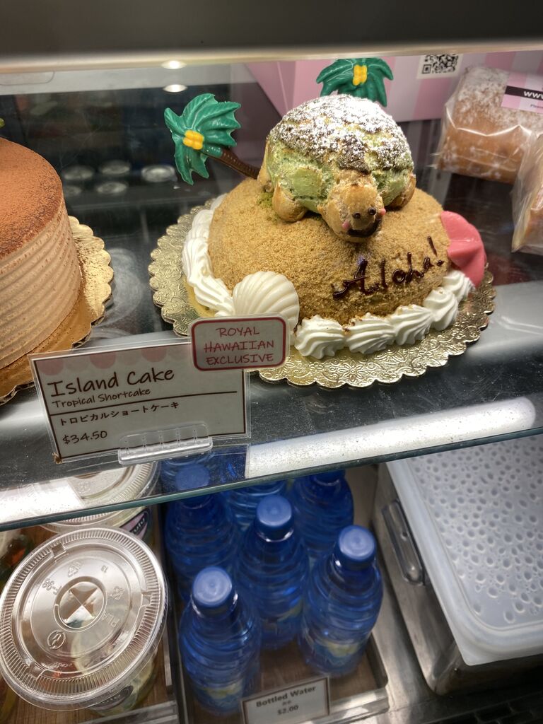 このロイヤルハワイアン限定の、アイランドケーキかわいいねぇ!!ホヌが乗ってるよ〜!