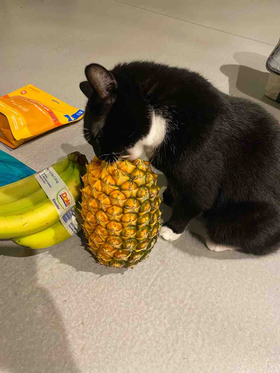 パイナップルの葉っぱを齧るのが好きなたま様。