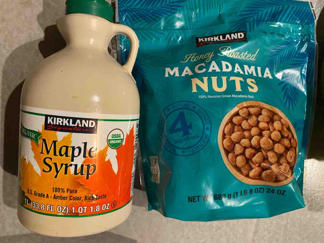 あとはメープルシロップに、夫が好きなマカダミアナッツ。(美味しすぎて危険)