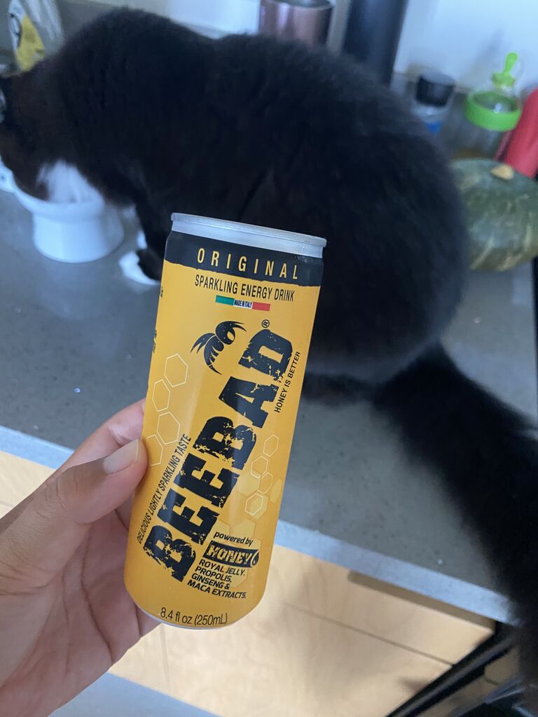 それからご近所さんにいただいた、ホールフーズで4.99ドルもするエナジードリンクを夫と半分こ。