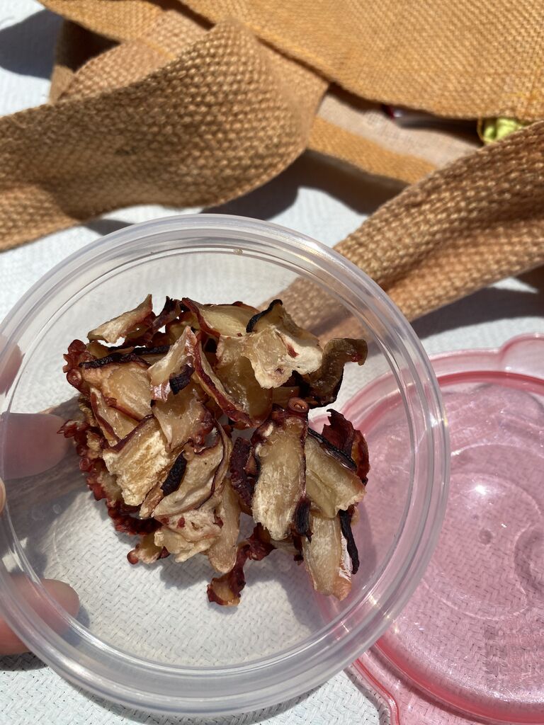 ちなみにこちら、コストコで買ったタコのやつ(ハワイ島のヒロの)を齧ってました。硬くて良き。
