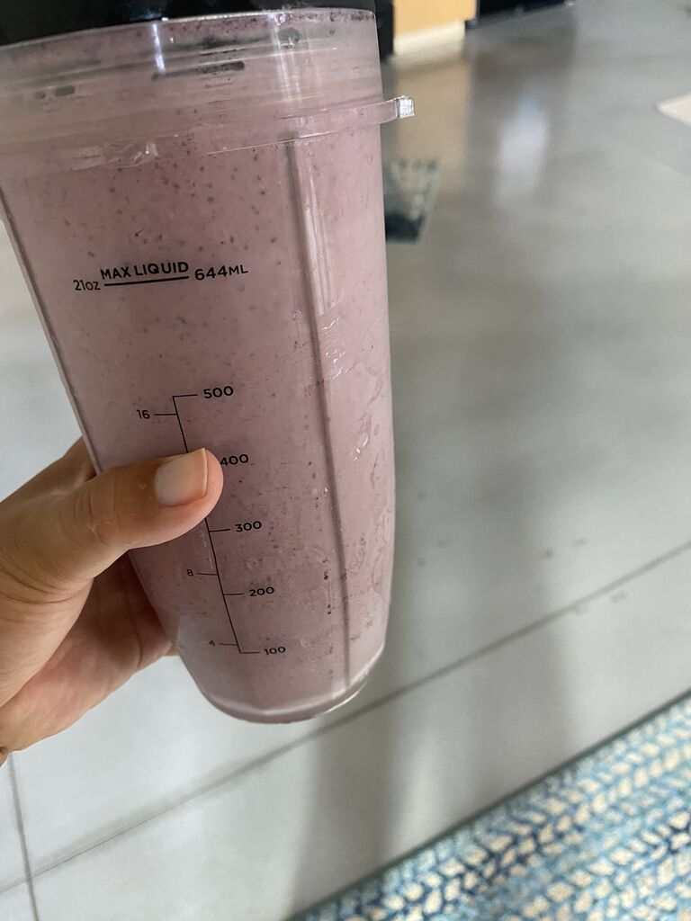帰ってきてプロテインスムージー。