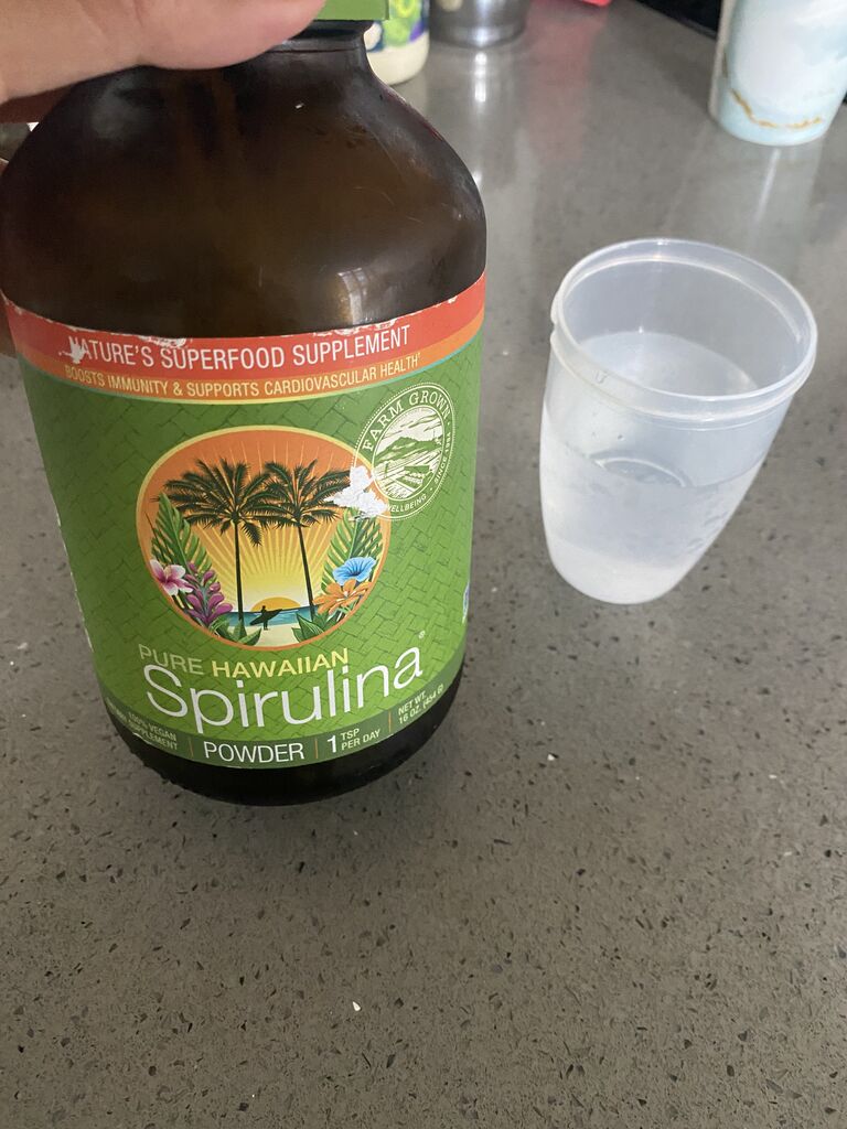 帰ってきてスピルリナ飲んで
