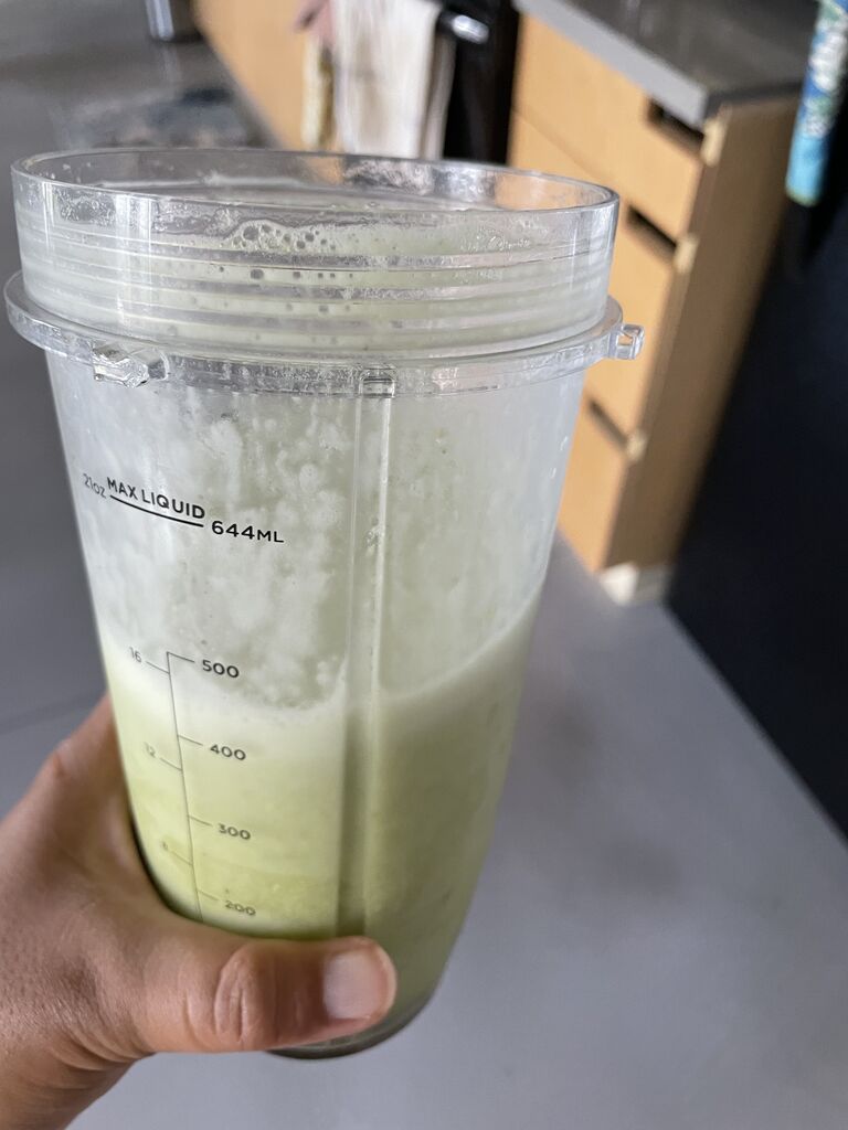 アラモアナセンターをうろついてから帰ってきてフェンネルと生姜のグリーンスムージー。